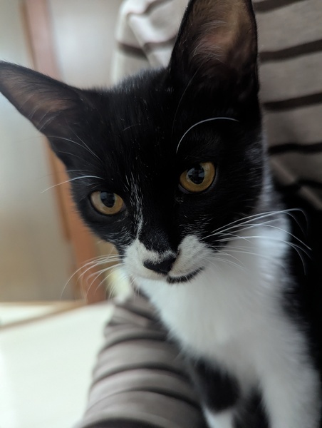 | 特徴(性格など) | 黒白、かぎしっぽ とても活発でかわいい女の子です。 ご飯はそこまで食べないです。 慣れてくると凄く甘えてきます。 |