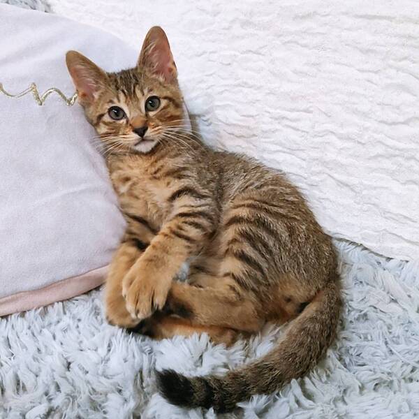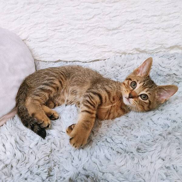 | 特徴(性格など) | 【仮名】しんらくん 【性格】キジトラ男子のすいくん☆ 穏やかで優しいイケメンくん。 遊ぶのもゴハンも好きだけど おそらくパピの事が一番好きw 人にも甘えてきますが パピ兄ちゃんのお腹に顔をうずめて フミフミするのは止められないようです。 一緒に過ごしているお友達や兄妹とのお迎えをお願い致します。 ※1ピキ譲渡不可 |
