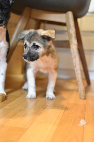| 特徴(性格など) | こまっ太くん、2-3ヶ月、オス、現在4kg 成犬時予想体重15キロ前後 ノミダニ駆虫、混合ワクチン2回済、マイクロチップ済。フィラリア予防12/1済 初めての人は怖いですが、慣れるとおしりをくっつけてくれたり、お腹見せてくれたり、甘えん坊さんです。体の大きな姉妹に押されがちな、優しい男の子です。 |