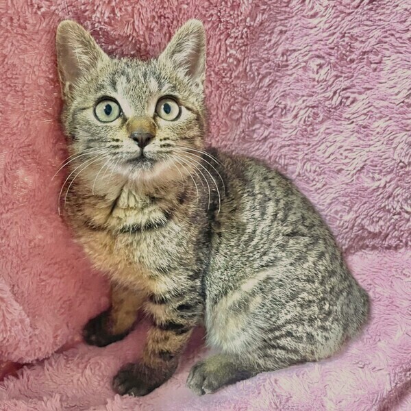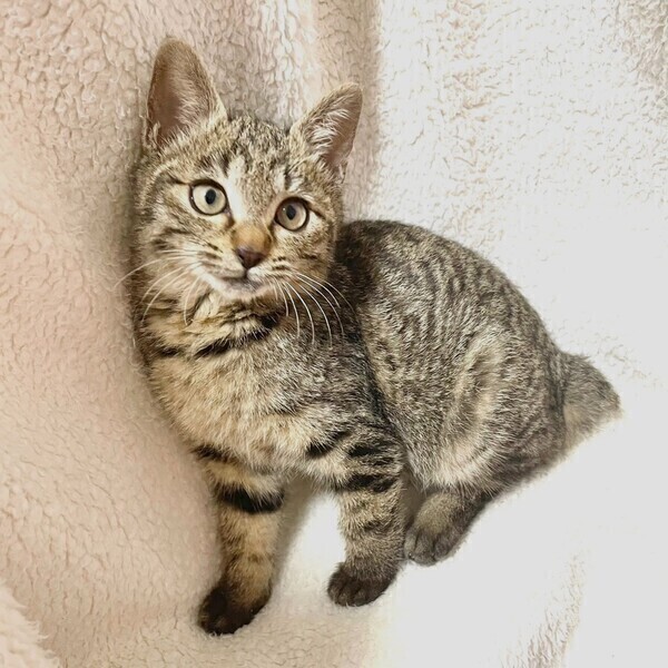 | 特徴(性格など) | 【仮名】ノエルちゃん 【性格】短い尻尾がチャームポイントのノエルちゃん☆ 丸くて女の子らしい可愛いお顔です。 人馴れ修行中ですが、撫でているとすぐゴロゴロ言うので あっと言う間に慣れると思います。 遊ぶ時はキジトラの本領発揮してエキサイトするので、 たくさん遊んであげると距離はすぐ縮まると思います。 一緒に過ごしているお友達や兄妹とのお迎えをお願い致します。 ※1ピキ譲渡不可 |