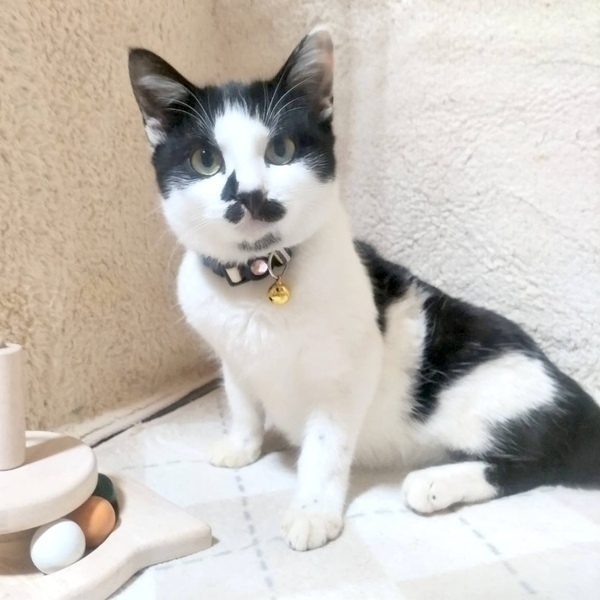| 特徴(性格など) | 【仮名】ちょび子ちゃん 【性格】お鼻のチョビチョビが可愛らしいちょび子ちゃん☆ 抱っこも爪切りもオーケーな人好きな女のコ♥ 人のそばに寄り添うようにくっついて 喉をゴロゴロ言いつつ離れません。 楽しいも美味しいも大好きな猫を飼育する事が 初めてのお家でも大丈夫なコです。 ※1ピキ譲渡可 |