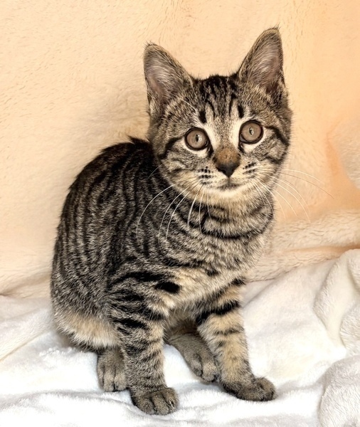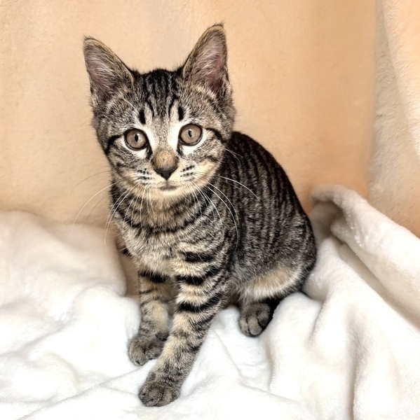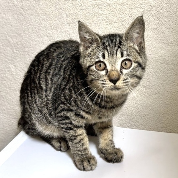 | 特徴(性格など) | 【仮名】モネちゃん 【性格】キジトラ女子のモネちゃん☆ まん丸お目々の可愛子ちゃん♡ 姉妹のモカちゃんとのにゃんプロは圧巻で、 おもちゃの取り合いにも負けていません! まだまだシャイで人馴れ特訓中ですが、 おもちゃやおやつは大好きなので モネちゃんの心を鷲掴みにしてあげてください。 一緒に過ごしているお友達や兄妹とのお迎えをお願い致します。 ※1ピキ譲渡不可 |
