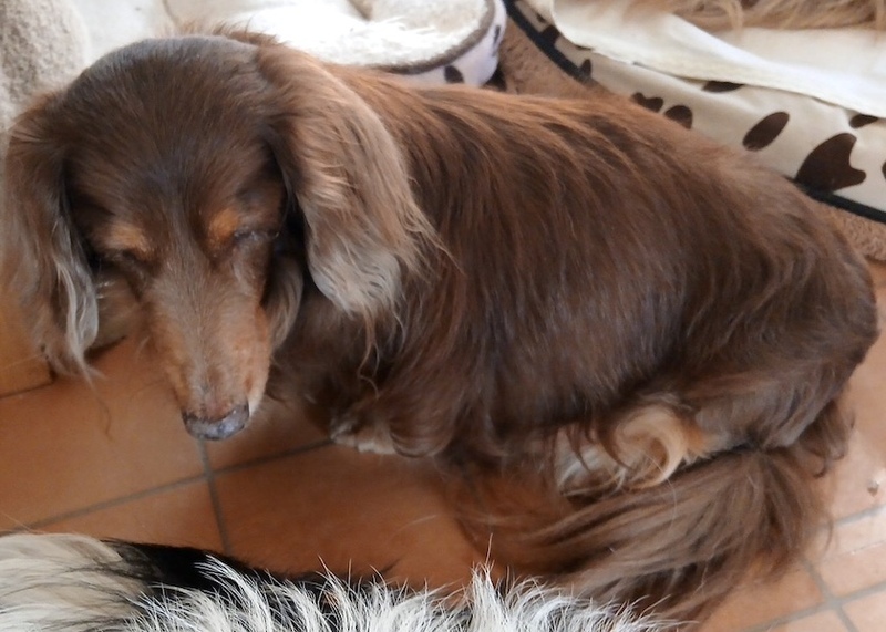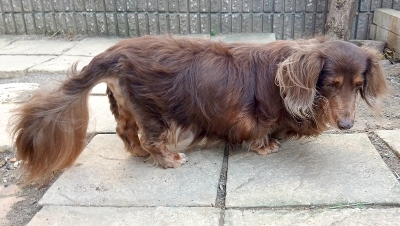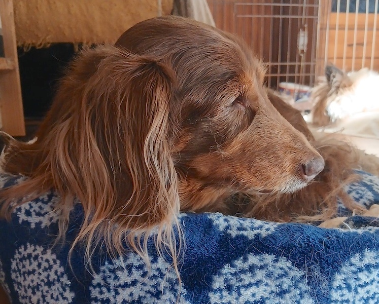 | 特徴(性格など) | ダックスフンドの『薫(くの)』です。 (ちばわんホームページ掲載番号No. 4534)←申込み時は犬の名前とこの番号を記載し、下記内容をよくお読みの上、必ずちばわんホームページからお申し込みください。 *「生まれた年月日」は推定です。成育環境によって誤差が生じることがあります。 【年齢】17歳 【毛色】レッド 【体重】7kg 【状態】全盲、フィラリア(ー)、マイクロチップ装着済、狂犬病予防接種済、ワクチン接種済、検便(-)、ノミ・ダニ駆除済 【人馴】問題なし 【性格・その他】穏やかな女の子です。 目は見えませんが室内の様子は把握し、家では不自由なく過ごしています。他の子がぶつかるなどすると一声二声鳴きますが、普段は全く鳴きません。 排泄は室内トイレ、庭、散歩とどこででもできますが、室内トイレまで行けずトイレの近くでしてしまうこともあります。 もうあまり歩きたがらないので、お散歩は薫の気の向くまま好きなように歩かせています。段差や障害物などは軽くリードを引き誘導する必要がありますが、あちこち匂いを嗅ぎながらゆっくり歩いています。 遠くへのお出掛けは車やカートに乗せています。車酔いはありません。移動中はおとなしく、初めての場所に連れて行っても物怖じすることはありません。 口腔内はかなり酷い状態でしたので、歯石除去及び抜歯を行いました。その際、いくつかあった小さなシコリも切除しました。腹部にあるタプタプとした大きな脂肪の塊は、負担が大きいということで切除せず、その後できたシコリも変化が見られないため切除予定はありません。 涙の量が少ないためゴミや目ヤニなどが流れにくく、朝晩、目の周りの汚れを取り目薬で水分を補うようにしています。 また、胆泥が見られるため肝臓のお薬を服用し、膵臓の数値も高めなので低脂肪のご飯を食べさせています。エコー検査で脾臓に血種のようなものがあったので、摘出手術も行いました。 現在は食欲もあり肝臓の薬も肝臓用のみで穏やかに暮らしています。 一緒にいられる時間はそう長くないかもしれませんが、一生懸命生きる薫にたくさんの愛情を注いてくださる方とのご縁を探しています。 引き続きの室内飼育で、フィラリア予防や定期的なワクチン接種などの健康管理、脱走・逸走への細心の注意、住居等の脱走防止対策を必ずお約束してくださる関東圏内のお留守番の少ないご家庭で、終生家族の一員として薫を大切にしていただける方からのお問い合わせを心からお待ちしております。 【預かり場所】神奈川県三浦郡 【日記】「チビスケんち」(インスタグラム) https://www.instagram.com/chibisukehaha/ 【申込】ちばわんの保護犬『薫(くの)』への申し込みはhttp://chibawan.net/contactform_dogからお願いします。 |