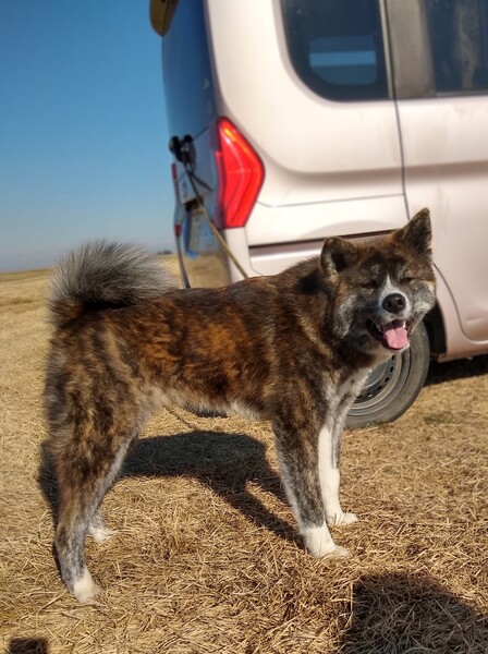 | 特徴(性格など) | とても無邪気な女の子です。 お菓子をくれる人と遊んでくれる人が大好きです。 ドライブも大好きです。 犬種 秋田犬 |