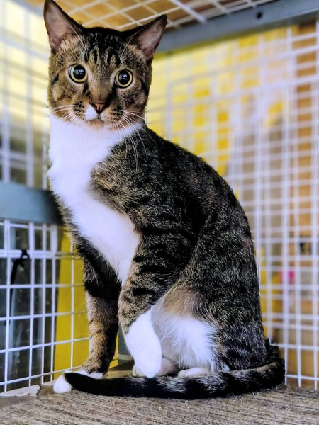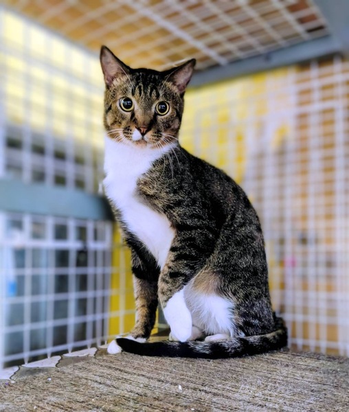 | 特徴(性格など) | 保護された当時は警戒心が強かったですが、驚くほど早く人馴れしました。 食いしん坊で他の猫にもフレンドリーな子です。身体は大きいですが、甘えん坊タイプです。穏やかな子ですので、育てやすいと思います。 クリクリの目が印象的なキジシロの男の子です。 年齢は推定になります。 |