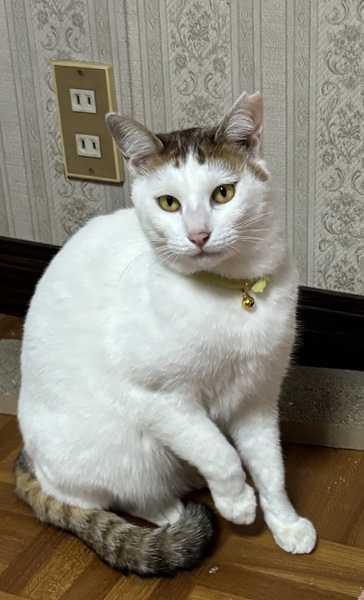 | 特徴(性格など) | 色は茶白で茶の部分が麦わら色です。 性格はとてもおとなしく、ほぼ泣きません。 よく懐いていて、よくスリスリしてきます |