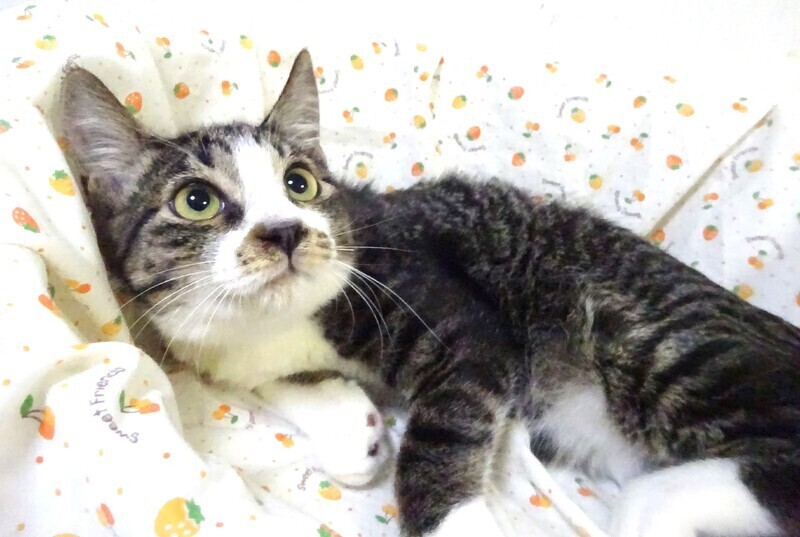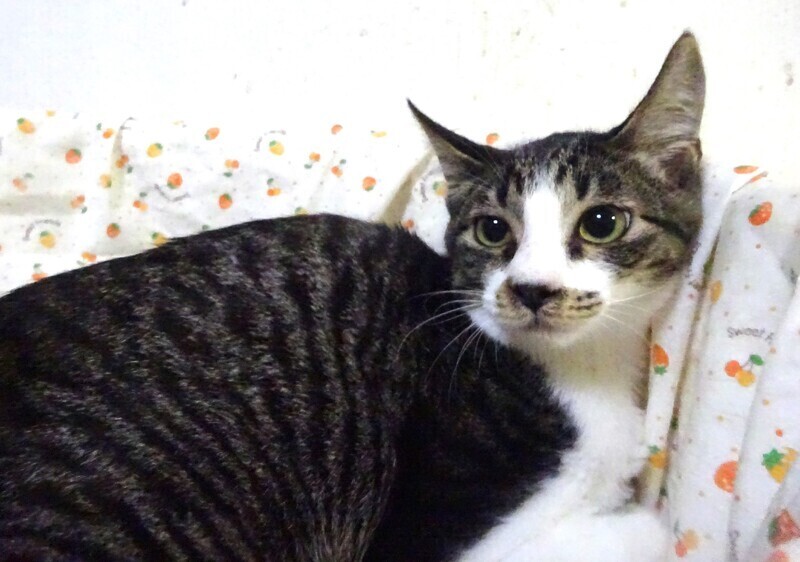 | 特徴(性格など) | 仮名: 心実(ここみ)くん、 オス 毛色: キジ白、尻尾長い 性格: 怖がりなので、保護時から威嚇していました。 今はおさまりましたが、何か怖い事があると威嚇したりします。 譲渡会など大勢の人が集まったり、手を出されたりすると怖がって威嚇することがあります。最近は、触っても怒らないし、ご飯の催促の時は器の前で待っていたりします。 抱っこしたりしても怒らないでいますが、緊張はしています。 爪切り、薬も大丈夫です。 兄妹の心愛ちゃんとは仲良くしていますので、2匹一緒のご縁があると嬉しいです。 基本は怖がりですから、ゆっくりと向かい合って馴らしてくださるお家を希望致します。 お届けは千葉県内で千葉市幕張から車で1時間圏内が希望です。 検便済 駆虫済 ワクチン済 去勢手術済 猫エイズ・白血病ウィルス検査はともに陰性です |