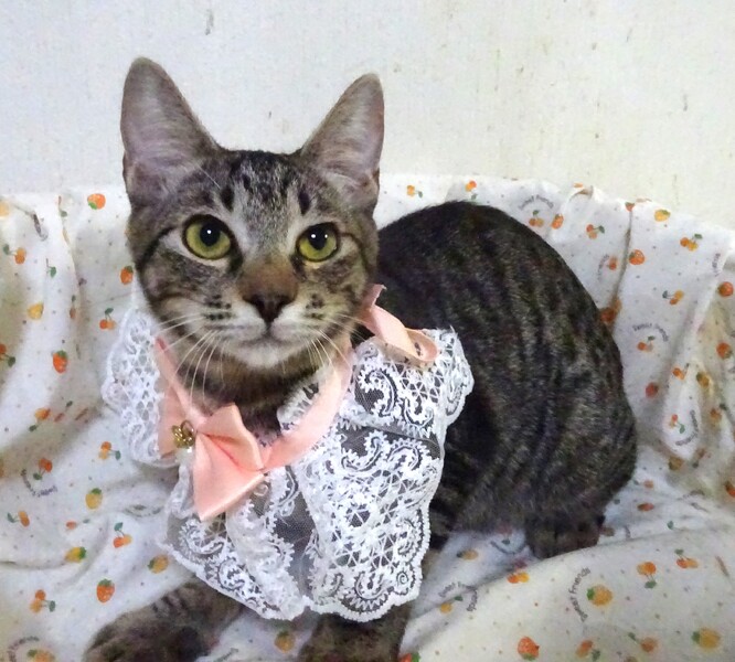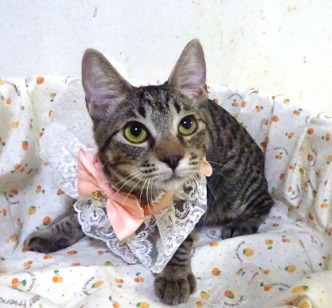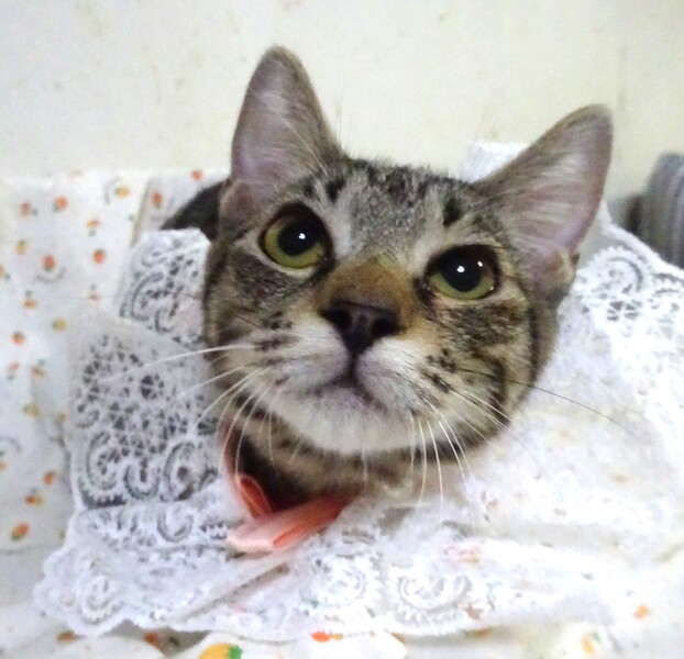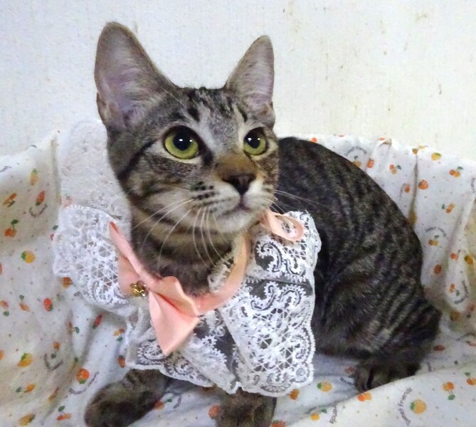 | 特徴(性格など) | 仮名: 心愛(ここあ)ちゃん、メス 毛色: キジトラ、尻尾長い 性格: 人との接触なく育ったので、保護時より威嚇し引きこもっていました。 最近は、威嚇もやめ、触っても怒りません。抱っこも爪切りも大丈夫ですが、まだ、抱っこ大好きまでは行きません。 脱力してくれたりし、喉ゴロゴロの時もありますが、体を固くするときもあります。心愛ちゃんのペースでゆっくりと馴らして下さるお家が希望です。 出来れば兄弟の心実くんと一緒だと心強いかと思いますが、別々でも構いません。 お届けは千葉県内で千葉市幕張から車で1時間圏内が希望です。 検便済 駆虫済 ワクチン2回済 避妊手術済 猫エイズ・白血病ウィルス検査はともに陰性です |