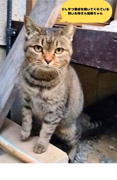 | 特徴(性格など) | キジ柄、まる顔、長いしっぽ、耳カットあり、年齢は目安です。 ふくちゃん、みーちゃんのお母さん猫で、子ども達より警戒心が強いですが、通ううちに少しずつ距離が近くなってきています。 まん丸お顔がチャームポイントの、賢く穏やかな性格のももちゃんです。 |