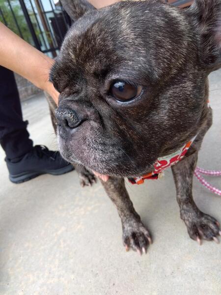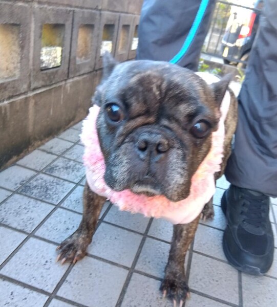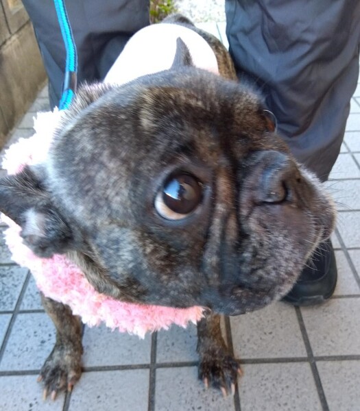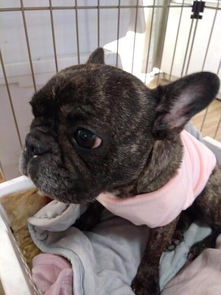 | 特徴(性格など) | フレンチブルドックの福ちゃんです。 被毛の色は、ブリンドル&ホワイトです。 7歳です。9・4キロです。 名前の通りのとてもかわいいお顔をしています。 性格は、基本落ち着いていますがお散歩大好き! 楽しそうに歩きます♪ 預かりボラさんに、可愛がられて少しずつ飼い犬修行中です。 超癒し系で、熟年夫婦にもお勧めです。 可愛い家族になれると思います^^ |