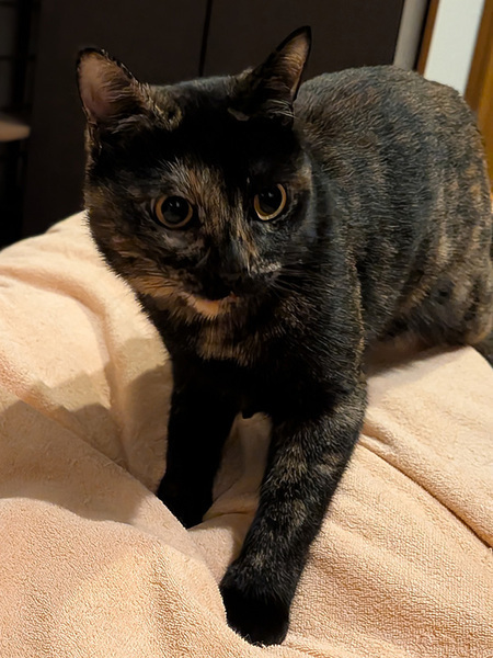 | 特徴(性格など) | ■□ 性格 □■ 子猫時代は姉妹の中でも一番のやんちゃっコで人慣れも早かったオレオですが、今は少し怖がりさんになっています。 人に対する警戒心が強め…ですが、おやつで手なづけて(笑)、毎日のように猫じゃらし遊びをしているうちに、その警戒心もだいぶ解けてきました。 容易に触らせてくれたりはしませんが、それでも、人が寝そべっているベッドの脇にちょこんと座って香箱を組んでくれるくらいにはなっています。 最近では、オレオの方から人にスリスリしてくれるようにもなりました! 遊ぶのは変わらず好きで、猫じゃらしを振って誘えば高確率でノッてきてくれます。 ちなみに、オレオが好きなのは「カシャカシャぶんぶん®」です ==メンタルケアについて 前の飼い主さんから「人が近づいただけで、大小をもらしながら逃げ回るようになった」と聞いていたため、メンタル面をケアするために現在、レスキューレメディを使用しています。 そのおかげか、聞いていたような事態を起こすことなく、ある程度、落ち着いて過ごすことができています。 また通院時に落ち着けるように、通院前に「ジルケーン®」を与えています。 ■□ ごはん □■ ドライフードもウェットフードも、一切選り好みすることなくよく食べます。 ■□ トイレ □■ おしっこもウンチも、ケージの中のトイレで上手にできています。室内フリーにしているときも、室内に置いているトイレを認識しており、トイレ以外の場所に粗相したことは一度もありません。 ■□ 爪とぎ □■ 爪とぎはボール紙製のものがお気に入りのようで、バリバリバリバリ…とかなり念入りに爪とぎします。 壁紙やベッドなどの布で爪とぎをすることは、現状ではありません。 爪切りに関しては、基本的に人に保定されることは苦手ですが、静かに洗濯ネットに入れた状態では落ち着いて爪切りさせてくれました。 ■□ 留守番 □■ 誤飲・誤食はないですし、分離不安もないので、留守番も問題ありません。基本的に、キャットウォークの最上段やクローゼットの上で寝ていたり、出窓で外を見ながらまどろんだりして過ごしています。 ■□ 他の猫との関係性 □■ 現保護宅の先住猫が他の猫を受け付けずケンカに発展してしまうため対面はしておらず、オレオが他の猫にどのような反応をするのかはわかりません。 ただ、ちょっとした隙間から先住猫と対峙したときには、オレオの方から威嚇することはありませんでした。 子猫時代に、お母さんと姉妹と4ヵ月間過ごしていたので、他の猫に対してまったく免疫がない、という素振りは見られません。 ~~最後に~~ 野良出身でも子猫の頃から人との遊びに積極的で、一緒に保護した3姉妹の中では人慣れも一番早かったのがオレオです。 一度、里子に出たものの、里親さんとの関係悪化により人間を怖がるようになってしまいました。それでも、生まれ持った性格なのか、再び人間との生活にも慣れてきたようで、徐々に心を許してくれる瞬間が増えてきています。 とはいえ、まだ警戒心は持ち合わせている様子。だからこそこれからの猫生は、オレオのペースでゆっくりと過ごして欲しいと思っています。 同じように思ってくださり、あくまでオレオを尊重した上で一緒に心地良い時間を過ごしてくださる方のご応募をお待ちしています。 ======= - 募集番号:207nc - 仮名:オレオ - 猫種:Mix - 性別:メス - 年齢:推定1歳 - 毛色:サビ - 体重:約3.5kg - 不妊手術:済み(2025年2月23日) - マイクロチップ:済み(2024年11月9日) - 3種混合ワクチン:2回目済み(2024年12月10日) ※協力病院が3年毎の接種を推奨しているため2025年は接種していません - 猫白血病ウイルス感染症(FeLV):陰性(2025年11月29日) - 猫免疫不全ウイルス感染症(FIV):陰性(2025年11月29日) - 糞便検査:寄生虫陰性(2025年11月30日) - 血液検査:異常なし(2025年11月29日) - お見合い場所:神奈川県横浜市港北区 |