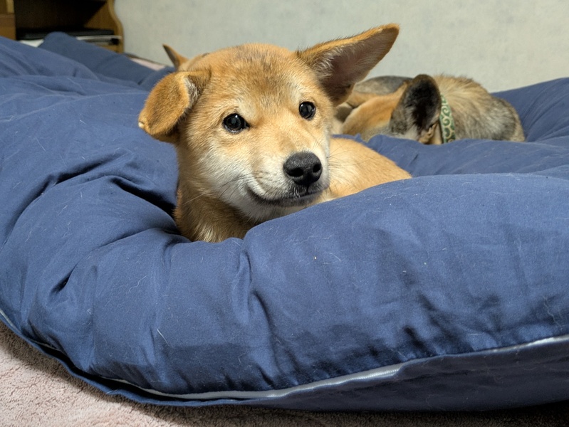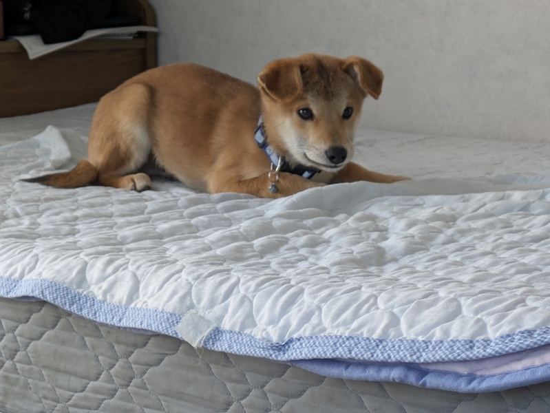 | 里親募集する理由 | 保健所に収容されていたところを保護しました。 保護当初はビビりで怖がりでどうしようもなかった子でしたが、11月半ば頃から急激に家族に馴染んできました。 トイレは完璧にシートで出来ます。 また仕事から帰ると「おかえり!」と尻尾を振って出迎えてくれたり、布団で一緒に寝たり、たまにドジをして笑わせてくれる非常に愛らしい子です。 恐らく15〜20kgほどに成長する見込み。 |
