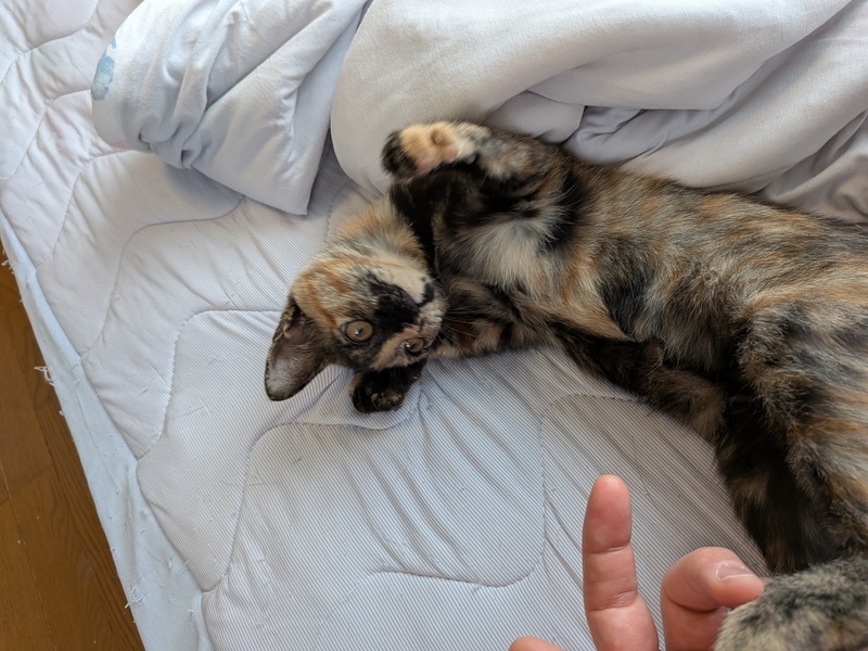 | 特徴(性格など) | ■健康状態 猫エイズ陰性、猫白血病陰性、駆虫済み、ワクチン接種済み、食欲旺盛、健康良好 ■猫の特徴 小柄で甘えんぼう、先輩猫とも良好に遊べる友好的な女の子♪かなりすばしっこくお転婆さん?猫じゃらし大好きで同年代の猫さんとは大運動会になる事もあります。最近では先輩猫との関係が良すぎて人へのスリスリが減ってきているような気がします(汗) |