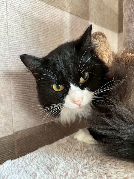 | 特徴(性格など) | 黒白ハチワレの長毛さん。 穏やかで、人が大好き♡ 猫さん同士はビビり気味ですが、喧嘩することなく過ごしてます。 |