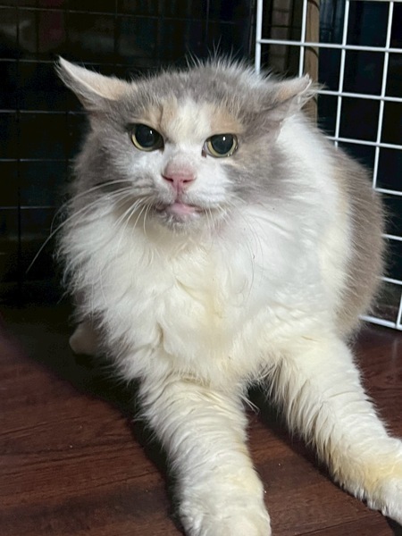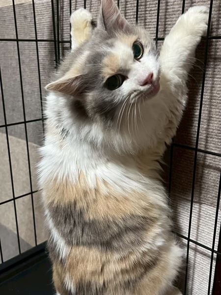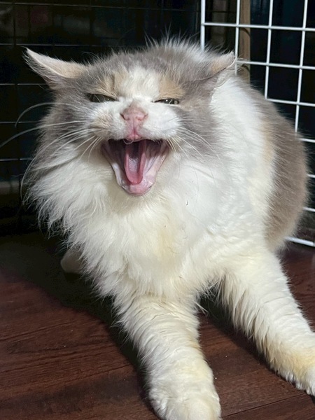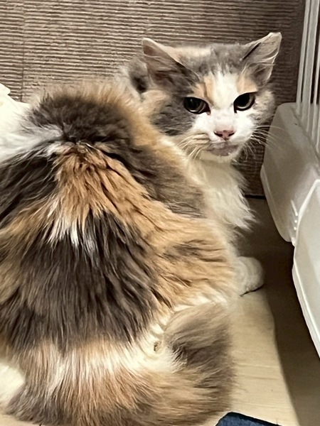 | 特徴(性格など) | パステルミケの長毛さん♡ ちょいとぺちゃったお顔が可愛いのに怒りんぼさん。まだまだ人馴れ修行中です。 お外暮らしが長かったから、歯があまりないです。 |