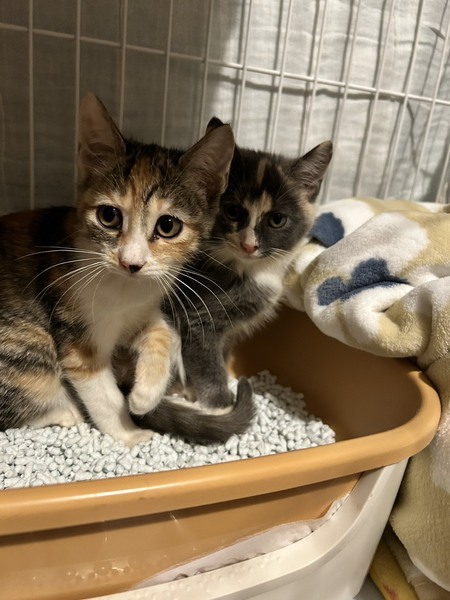 | 特徴(性格など) | ◆まつりちゃん マイペースなツンデレ三毛子猫 ●月齢の小さな子猫は、以下の条件についてご了承の上で応募をご検討下さい。 ◆お留守番の少ないご家族、 ◆横浜市青葉区内もしくは近郊にお住まいのご家族、を希望します。 ◆2頭でお迎えくださるご家族を優先いたします。 ◆小さなお子様のいるご家庭は状況によりお断りする場合がございます。 ◆高齢者のみのご家族からの子猫のお申し込みはお受けしていません。 ○沖縄県内にて保護され、飛行機に乗ってやってきました。 ○生後3ヶ月半くらい(2025年12月時点)の縞三毛の女の子です。 ○やや警戒心があります。 ◯部屋に入るとパッと逃げますが、すぐに寄って来てくれます。 ◯抱っこはまだあまり好きではありません。 ◯おもちゃでよく遊びます! ◯生粋の三毛女のまつりちゃん。 ◯マイペースで子猫ながら、既にツンデレ発動中。 ◯元気にすくすく育っています。 ◯里親さま、大募集中です!! ☆単身のかたはご相談ください。 ★ワクチン1回接種済み。 ★不妊手術は、成長と健康状態をみて近日中に施術予定です。 ★猫エイズ、猫白血病ともに陰性。 ☆★☆★☆★☆★☆★☆★☆★☆★☆★☆★☆★☆★☆ ~12月21日(日)市ヶ尾にて譲渡会開催!~ ◎場所・・「スペースbaobab」 神奈川県横浜市青葉区市ヶ尾町1154-2 市ヶ尾プラーザビル1階アルファード商店会内 田園都市線「市が尾」駅西口より徒歩約30秒 ◎日程・・12月21日(日)(雨天決行) ◎時間・・ 12:30~14:30 (受付14:15まで) (会場に利用可能な駐車場はございません。近隣のコインパーキングをご利用ください。) *参加の際は、アルコール消毒のご協力をお願いいたします。 *混雑状況により、入場制限をさせていただく場合がございます。 ※参加予定の犬猫は体調により参加できない場合があります。ご了承ください。 ☆★☆★☆★☆★☆★☆★☆★☆★☆★☆★☆★☆★☆ |