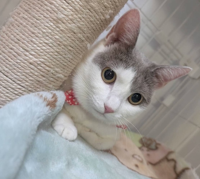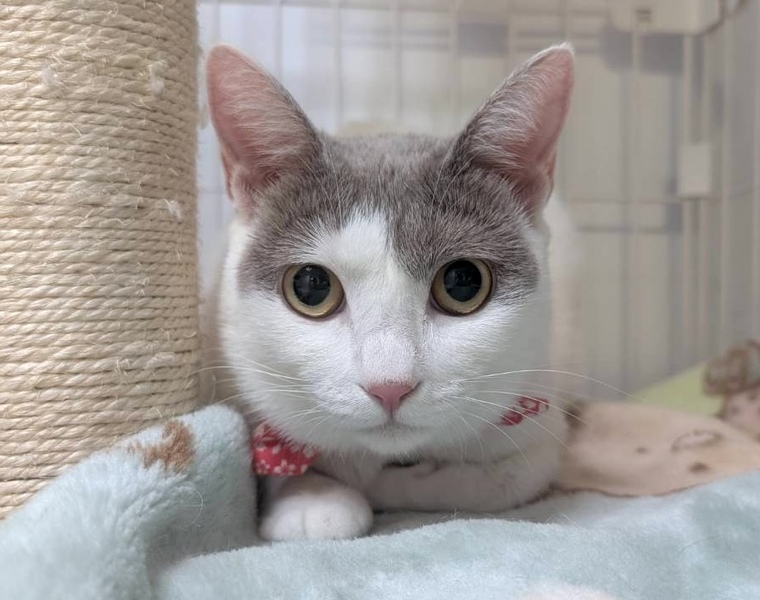 | 里親募集する理由 | TNR中に見つけました。 怪我をしていたので保護しました。 一度里親さんのお家に行きましたが、ご家族に酷いアレルギーが出てしまい戻ってきました。 ご家族はもちろん先住猫さんとも楽しく過ごせるようになっていたのに本当に残念です。 今度こそずっとのお家で幸せに暮らして欲しいです。 |