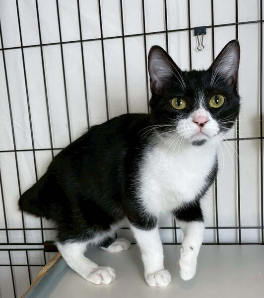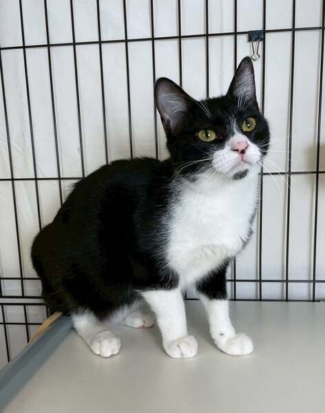 12/28譲渡会出場にゃんず 黒白ハチワレ子猫♀@約6ヶ月(仮名)ライスちゃん