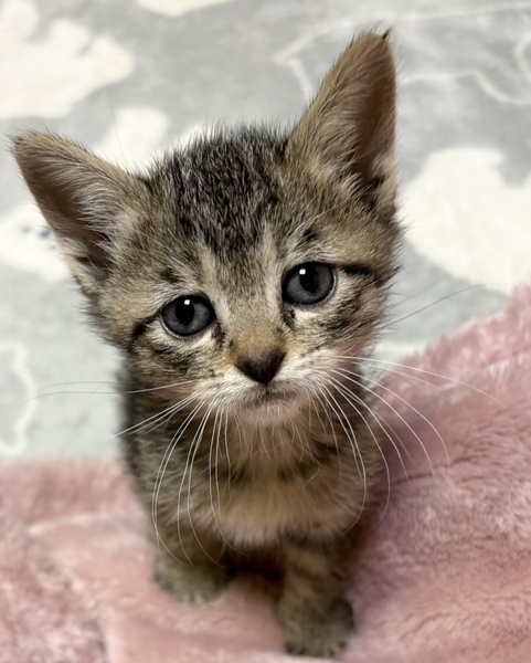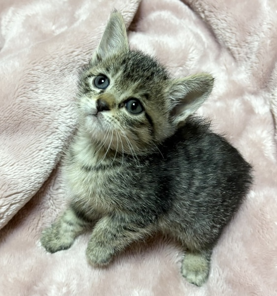 | 特徴(性格など) | ✳︎特徴 王道のキジトラさんでアイラインバッチリの美人ちゃんです。目尻から伸びているアイラインが下向きに伸びているので、タレ目風に見えるところがまたなんともいえず可愛いです。お写真はブルーの瞳ですが、こちらもキトンブルーと言って、赤ちゃんの時だけの色で、今後変化をしていきます。 ✳︎性格 授乳期からニンゲンが関わっていますので、人見知りは全くありません。兄妹たちと一緒によく寝てよく食べて元気に過ごす日々だそうです。女の子なので将来どんな性格になっていくのかは未知数ですが、ママ=ニンゲンなので、新しい環境になってもニンゲン大好きの甘えん坊さんになるのではないのかなと思います。成長したらどんなキャラになっていくのか、これからの変化をぜひ楽しんでください。 ✳︎健康状態 保護された時は下痢がひどかったそうですが、現在は治り元気に過ごしています。離乳食もよく食べています。ワクチンは幼齢で母子免疫が残っているため未接種です。体重が800gを超えてから、接種をお願いしております。血液検査はまだ小さくて針が刺せず実施できておりません。採血できる体重になったらすぐに実施します。 4ヶ月くらいまでの間は、子猫さんの社会性が育つ時期になります。取っ組み合いの喧嘩をしながら、甘噛みを覚えたり、追いかけっこしながら、動体視力を養っていきます。 一緒に保護された姉妹ちゃんと一緒に2頭で迎えてくださるお宅や、一緒に遊べる若い先住猫さんがいるお宅、お留守番があまり長くなく猫さんと一緒に遊ぶ時間が十分取れるお宅を優先させていただきたいと考えております。 どうぞよろしくお願いいたします。 |