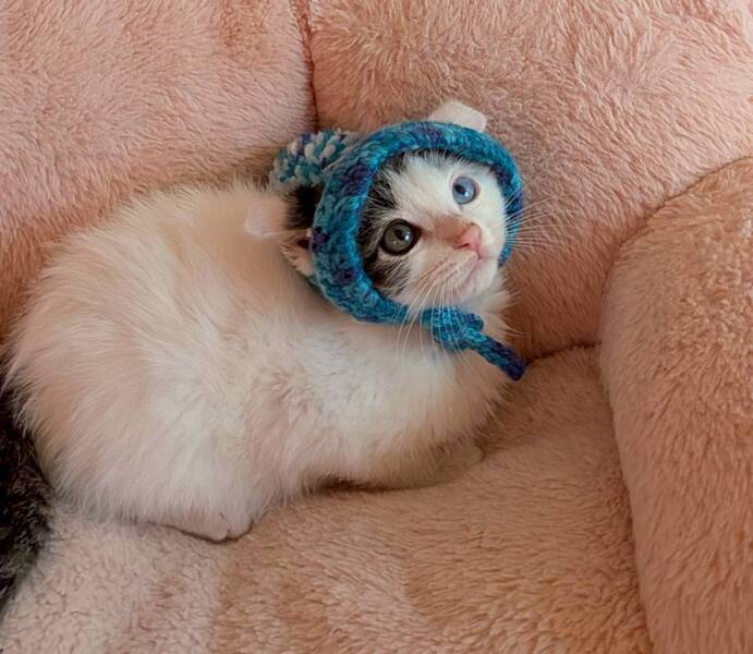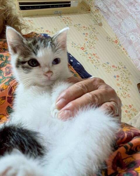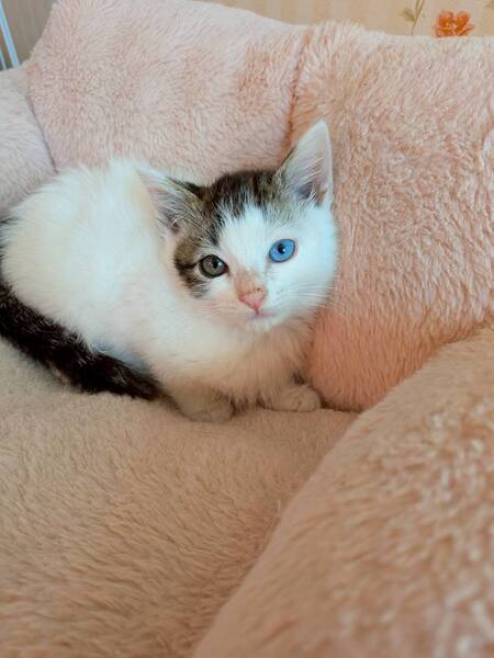 | 特徴(性格など) | ・アピールポイント:オッドアイが綺麗なな男の子です。玩具に戯れたり、同じ場所で保護した「おもち」と仲良しで一緒に戯れあってます。まだ、少しビビリさんですが抱っこしてるとスヤスヤ眠ったり、チュールを喜んで食べてくれます。 ・譲渡先の希望:出来たら仲良しの「おもち」と一緒に迎えてくれる方。または先住ちゃんがいる方、お留守番が短い方希望します。 |