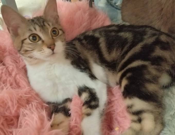 | 特徴(性格など) | 綺麗なアメショ柄の女の子です。 人には甘えん坊です。 単体飼いにも向いてると思います! |