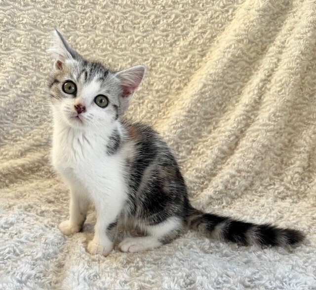 | 特徴(性格など) | 【仮名】ロッシェくん 【性格】超絶イケメンなロッシェくん♪ ラガマフィンのようなスコのような 独特なルックスのコです♪ シルバータビーに茶毛が入る珍しい毛並みなので 病院の先生からは三毛のオスじゃん! って言われましたが違いますよ(笑) あっという間に人馴れして 今では甘えッコ街道まっしぐらです♪ おもちゃ遊びが大好きで 音がしたら寝てても飛んできます♪ 気分アゲアゲのテンションMAX! 一緒に保護したマカロンくんや プリンちゃんとのお迎えをお願いします♪ ※1ピキ譲渡不可 |