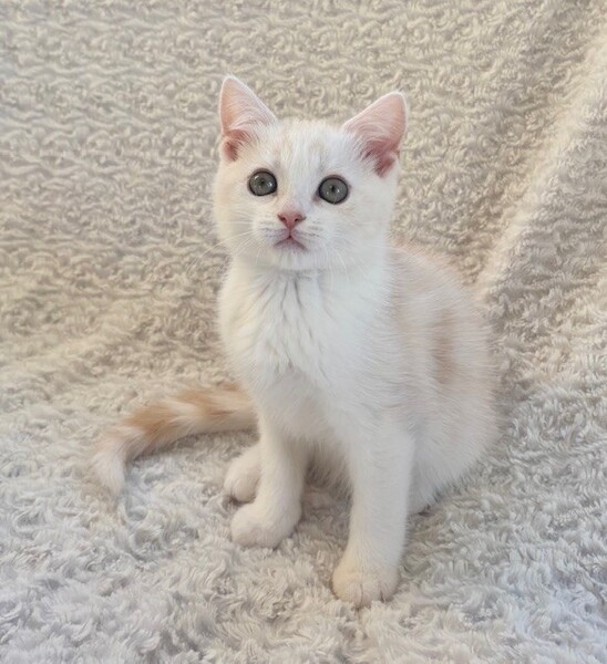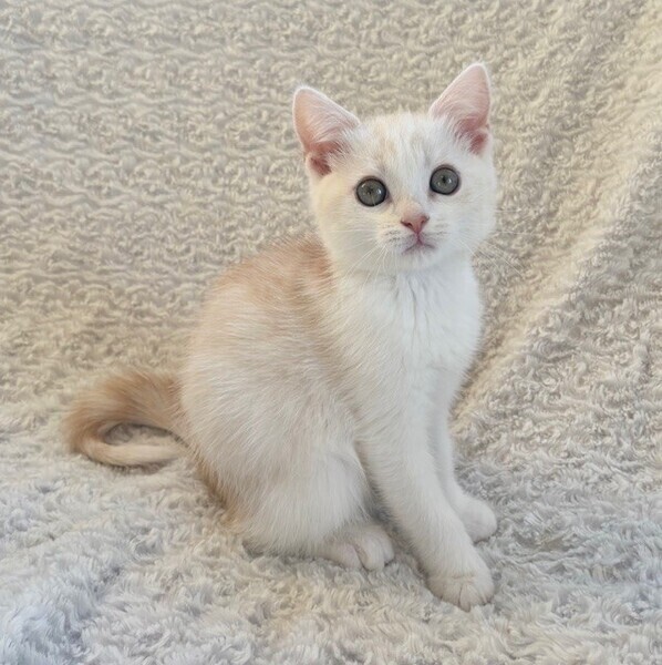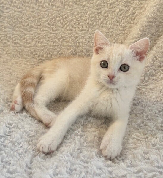 | 特徴(性格など) | 【仮名】マカロンくん 【性格】超絶イケメンなマカロンくん♪ ミヌエットのようなマンチカンのような クリームタビーかつ整った顔立ちが 思わずビジュイイじゃんって 言いたくなるルックスです♪ あっという間に人馴れして 今では甘えッコ街道まっしぐらです♪ おヒザも大好きで安心して寝ちゃいます♪ 一緒に保護したロッシェくんや プリンちゃんとのお迎えをお願いします♪ ※1ピキ譲渡不可 |