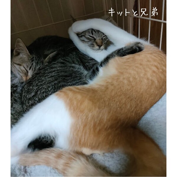 | 特徴(性格など) | 人に甘えることがやっと楽しくなってきたキットです。 甘えたいときには(特にご飯前)撫でるとゴロゴロ言いながら喜びます。が、突然「ハッ!」と我に返ったかのように引きます。まだビビりん坊も健在です。もしかしたらデレデレばかりの超甘えん坊にはならないのかもしれませんが伸びしろはいっぱいです!そんなキットを丸っと受け入れて少しずつ成長する過程を見守りつつ楽しんでいただけたら嬉しいです♪ 元気で活発な男の子です!兄弟とのニャンプロレスや追いかけっこは楽しそうに生き生きとしています。おもちゃも大好きで鈴入りボールでの一人遊びも得意です。ドタバタと楽しそうに遊びますが、途中誰かに横取りされても譲ってあげる優しい性格です。 くっきりとした茶色多めの茶白模様です。しっぽは長くてシマシマ♡目が大きくてはっきりとした顔立ちのイケニャンだと思います。今はまだ痩せ気味体型ですが、これから縦にも横にも大きくなるでしょう。 猫は環境の変化がとても苦手です。新しい環境に慣れるまで少し時間が必要になるかと思います。彼のペースに合わせて大らかに見守ってくださるご家族様を希望します。 |