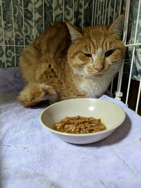 | 特徴(性格など) | 茶白・♂ とても穏やかで人懐こく、マッサージが大好きです。 断脚した予後も今のところ良好です。 エイズ白血病陰性 ノミ・ダニ駆除済み |