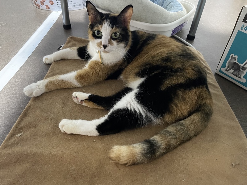 | 特徴(性格など) | 大人しい三毛猫です。 少しビビリですが、好奇心も旺盛なのですぐに人馴れするタイプです。 おもちゃで遊ぶのが大好きです。 名前:タビィ |
