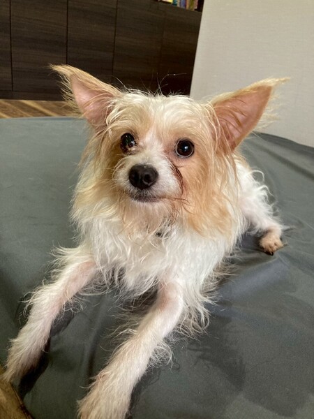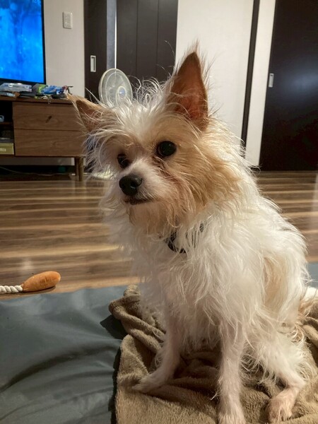 | 特徴(性格など) | ビビりと聞いておりましたが、預かりボランティアさん宅に来てすぐに撫でて撫でてとスリスリ身体をすり寄せてきたそうです。 先住犬や猫とも揉めることなく過ごしております。 大人は勿論、子供も大好きでよく遊んでいます。 かじって良いオモチャとそうでない他のぬいぐるみも区別している賢い子。 自分がお腹いっぱいの時は他の犬のご飯を狙う事はありませんが、多頭の場合は最初、少し気を付けた方が良いかもしれません。他の犬に自分のご飯を食べられても平気なので、自分も他の犬のご飯も狙いに行って良いと思い込んでいるようです。人間の食事は欲しがりませんが、食事中もお膝に乗っていたいタイプです。可愛い瞳で見上げてくるので、人間側の忍耐力が試されます。 トイレは外でも室内ペットシーツでも出来るようになりました。 オシッコは足上げありでシートにもします。 預かり当初2-3日はマーキングがありましたが、それ以降はなくなりました。 うんちの失敗は無し、おしっこは時々外すくらいで落ち着いています。 ケージインも完璧です。 ご飯時は自分からササッとケージに入ります。お留守番も上手。最初だけひゅんひゅん鳴きますが、玄関の閉まる音を聞くと寝ます。 去勢手術で滞在した動物病院では吠えず暴れず、病院スタッフに撫でられながらご機嫌に過ごしていたそうです。 お散歩は大好きで、スタートはやる気満々で引っ張りがありますが徐々に落ち着いて歩けます。他の犬や人間に吠える事もなく落ち着いて過ごしています。 とにかく撫でられたい子で、すぐ「なでて~」とゴロンとお腹を出してアピールしてしまうかわいいやつです。 人間の大きな声が苦手なのかなと思われる瞬間があります。 もしかしたら捨てられる前、そういう扱いを受けていたのかと思うと切なくなります。 |
