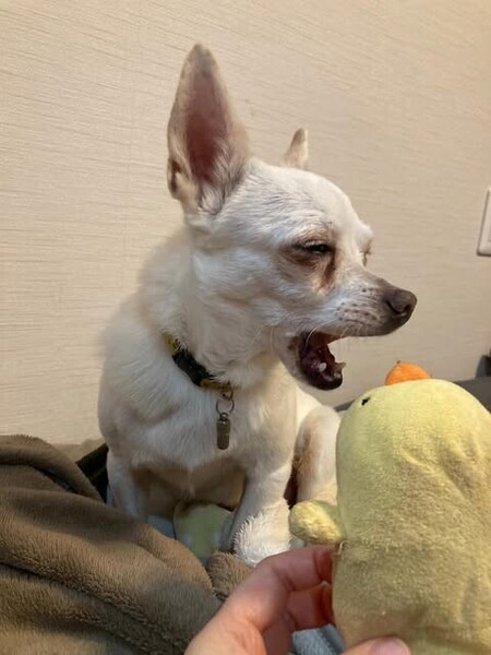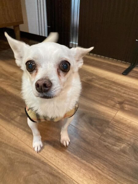 | 特徴(性格など) | そんな彼女ですがトイレは上手、でペットシートから外しません。 最初は吠えることもなくひっそりとしていました。 健気で儚い雰囲気が深窓の令嬢という呼び名がピッタリ。 預かりボランティアさんのお家に慣れ始めたら 少しづつ尻尾をフリフリと振るようになり ご飯も完食できるようになってきました。 家の中でお余り動かず、お気に入りの場所でひっそりと寝ているようです。 見ていると切ないので、これからどんどんアクティブになってほしいです。 そんな状態なので、 おもちゃに興味を持って遊び始めたときは人間側が大喜びしました。 人生に絶望していた小さいチワワさんに たくさん楽しいことを教えてくださるご家庭に。 |