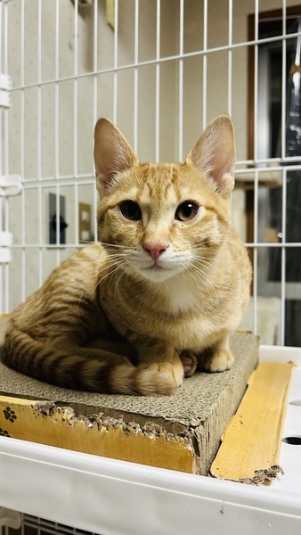 | 特徴(性格など) | 2025年9月26日生まれ、現在3ヶ月の茶トラの男の子です。 保護した母猫から生まれた4兄弟のうちの1匹になります。 トラ柄がしっかりしていて、全体的に少し淡い茶色。 しっぽの先がほんのりグレーがかっているのが、この子のチャームポイントです。 とても甘えん坊で、のんびりしている時は声をかけるだけでゴロゴロ喉を鳴らしてくれます。 元気いっぱいに兄弟たちと遊び回っていても、抱っこして撫でてあげるとゴロゴロしちゃうくらい人が大好きな子です!でも腕から降りると暴走バイクのようにまた遊びに行きます。 わんぱくで体力もあり、少し遊んだくらいでは満足しない元気さもありますが、 人のそばにいるのが本当に大好きで、トイレ掃除をしていると真横で見守ったり、スコップで遊び始めたり愛嬌たっぷりの子猫です。 |