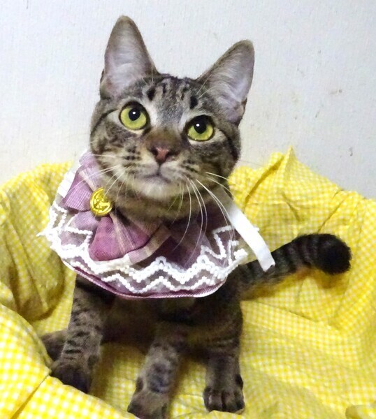 | 特徴(性格など) | 仮名: 心愛(ここあ)ちゃん、メス 毛色: キジトラ、尻尾長い 性格: 保護時はとてもビビりで奥に引きこもっていました。 威嚇はなかったものの、人馴れせずに抱っこも難しい子でしたが、最近は自分から寄ってきてくれて挨拶します。 抱っこや爪切りも出来、落ち着いてきたと思います。 ご飯の催促も出来ます。 兄妹の心実くんとは仲良く遊んでいます。 一緒のご縁があると良いのですが、ビビりくんで、初めての人だと嫌がるので譲渡会に参加が難しいです。 心愛ちゃんは、結構、隣の子にも興味を示したりして手をだして遊ぼうとしますので、他猫ともうまくつきあえるのではないかと思います。 大人しい子ですが、じゃらしは好きで遊びます。 ゆっくりと付き合って頂けるご家庭を希望致します。 お届けは千葉県内で千葉市幕張から車で1時間位が希望です。 |
