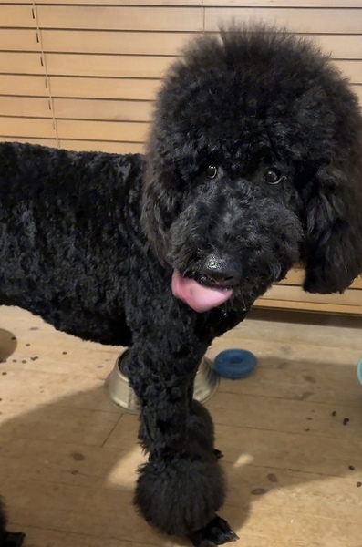 | 特徴(性格など) | ブラックのスタンダードプードルです とても頭がよくボール遊び大好きです 性格はおっとりですが少し臆病なところが あり揺れてる草などにびっくりしたり 仕草が可愛いです |