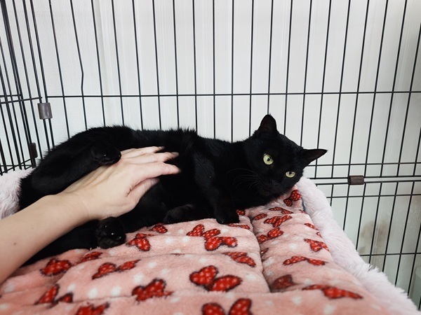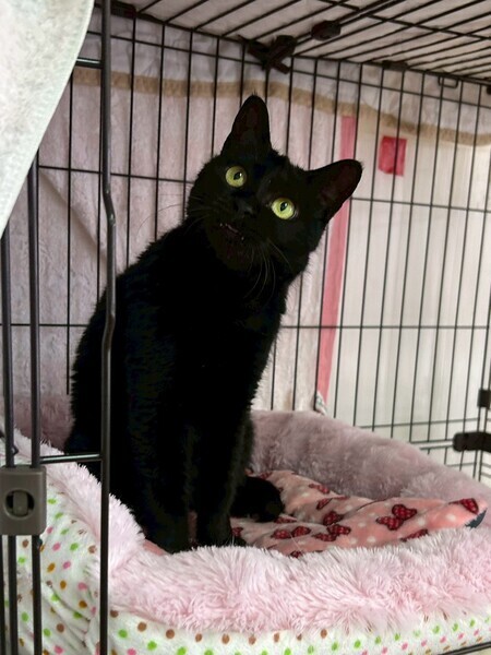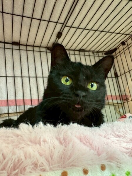 | 特徴(性格など) | 2018.9.6生まれ(推定) 毛色:黒 丸顔のかわいい黒猫女子。推定7歳。 まだはっきりとした性格は掴みきれていませんが、環境の変化に強く、たくましさを持っています!! ナデナデは好きですが、お気に召さないとパシパシしてきます笑 行動範囲は狭めですが、オモチャへの反応もgood♪ 食いしん坊さんは慣れると言われているので、確実に慣れていくと思います!! |