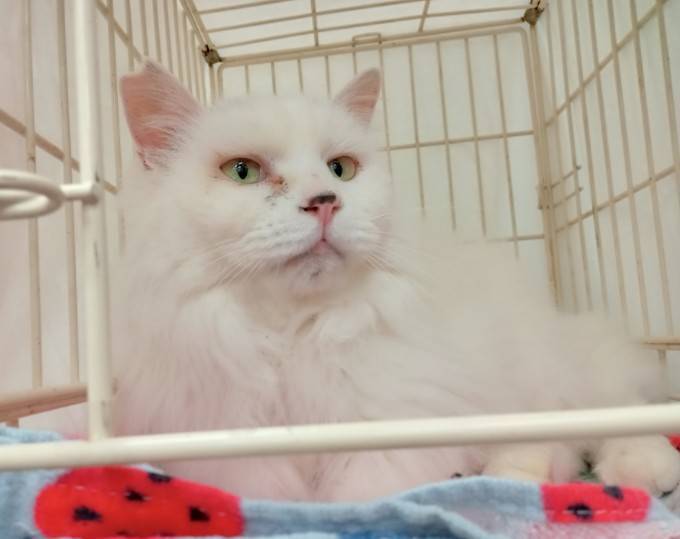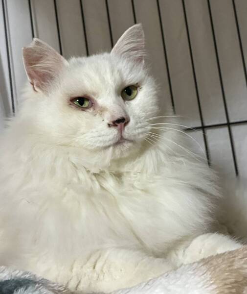 | 特徴(性格など) | 大人しく、撫でられるのが大好きな白長毛の女の子。 性格上、1頭飼いが向いてると思います。 |