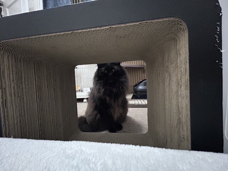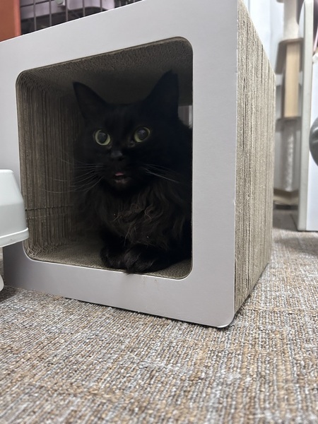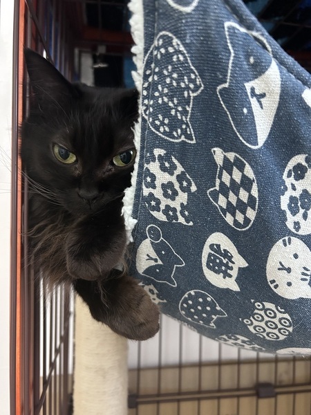 | 特徴(性格など) | まだ少し怖がる様子を見せることもありますが、攻撃性はなくて大人しく、ハンモックに揺られてリラックスするのがお好き♡ 撫で撫ではお顔より断然お尻派! 少し距離のあるところからスリスリくねくねしたり、控えめにお尻をピトっと付けて甘えたいアピールをしてくれます。 ブラシ大好きです❤️ ちゅるちゅるでツヤツヤの長毛とペロっと出ちゃう舌もチャームポイント♪ 人馴れしていく様子をInstagramで公開中? 〝ネコネクション横浜〟で検索? 保護当日からの日々をInstagramハイライトでご覧いただけます。人馴れしていく様子を是非覗きに来てください? https://www.instagram.com/neconection_yokohama?igsh=a2Y2dnZvbDFqdDBu&utm_source=qr |