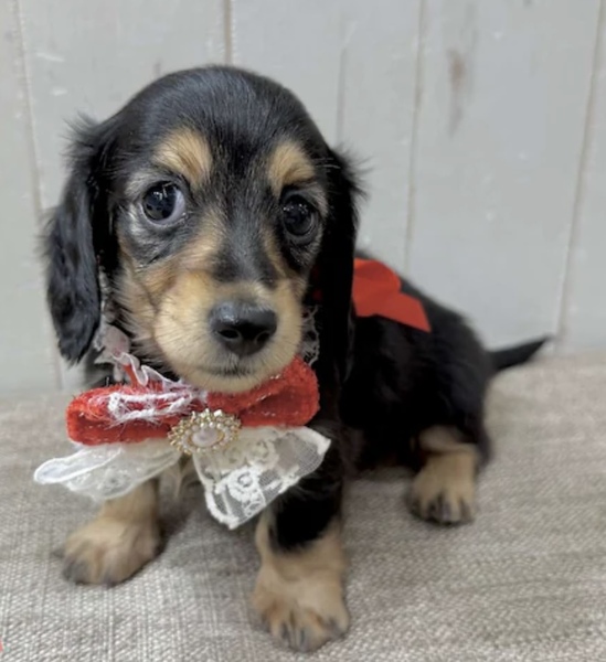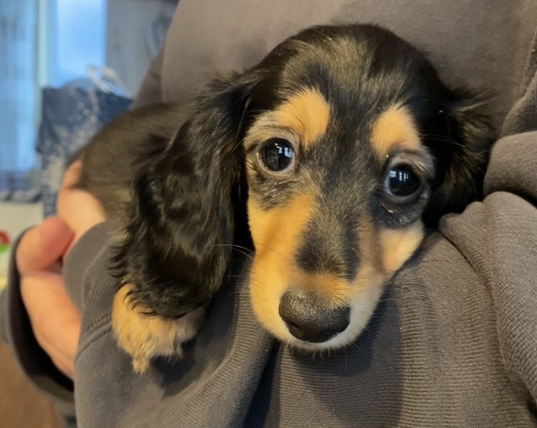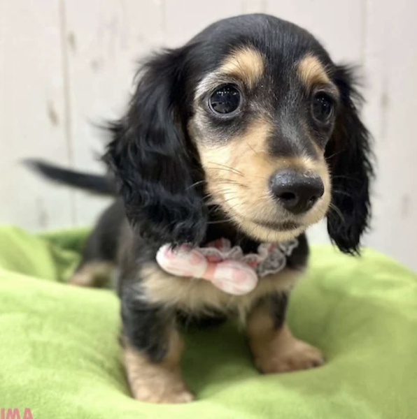 | 特徴(性格など) | ミニチュア・ダックスフンドの女の子です。 毛色はブラック&タンで、はっきりしたコントラストのある美しい毛色です。 まだ月齢は若いですが、人に対してとても愛情深く、初対面の人にも比較的すぐに慣れるタイプです。 日常生活の中で継続的に社会化を行っており、人や物音、さまざまな環境にも慣れています。 健康状態は良好で、混合ワクチンは現在2回接種済みです。 狂犬病予防接種は2月7日、混合ワクチン3回目は2月14日に接種予定です。 マイクロチップ装着済み、血統書(JKC)あり。 現在は家庭内で大切に育てています。 |