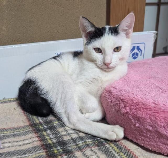 | 特徴(性格など) | ◆オッシュくん 遊ぶの大好き鍵しっぽ白黒男子 ●月齢の小さな子猫は、以下の条件についてご了承の上で応募をご検討下さい。 ◆お留守番の少ないご家族、 ◆横浜市青葉区内もしくは近郊にお住まいのご家族、を希望します。 ◆2頭でお迎えくださるご家族を優先いたします。 ◆小さなお子様のいるご家庭は状況によりお断りする場合がございます。 ◆高齢者のみのご家族からの子猫のお申し込みはお受けしていません。 ○沖縄県内にて保護されました。 ○生後4ヶ月半くらい(2026年1月時点)の白黒の男の子です。 ○ぱっつん前髪みたいな模様がかわいいです。 ◯珍しいくるんとまるまった幸運をつかむ鍵しっぽです。 ◯抱っこができますがまだ怖がりで逃げます。でもすぐにスリゴロさんになりそうです。 ◯おもちゃで遊ぶのが大好きです。 ◯同じく里親募集中の「アイビー」とは兄妹です ★ワクチン1回接種済み。 ★不妊手術は、成長と健康状態をみて近日中に施術予定です。 ★猫エイズ、猫白血病ともに陰性。 ☆単身のかたはご相談ください。 ○YouTubeにも動画をあげています。こちらもご覧下さい。 「オッシュ」 https://youtu.be/DDx2Sz4h_DQ ☆★☆★☆★☆★☆★☆★☆★☆★☆★☆★☆★☆★☆ 1月25日(日)荏田にて譲渡会開催! ◎場所・・「ホームズ荏田店」 神奈川県横浜市青葉区荏田西1ー3ー14 田園都市線「江田」駅より徒歩約7分 246号線江田駅交差点そば ◎日程・・1月25日(日)(雨天決行) ◎時間・・13時から16時 【15時30分受付終了】 (会場に利用可能な無料駐車場がございます。そちらをご利用くださいませ。) *参加の際はアルコール消毒のご協力をお願いいたします。 *混雑状況により、中止させていただく場合がございます。 ※参加予定の猫は体調により参加できない場合があります。ご了承ください。 ☆★☆★☆★☆★☆★☆★☆★☆★☆★☆★☆★☆★☆ |