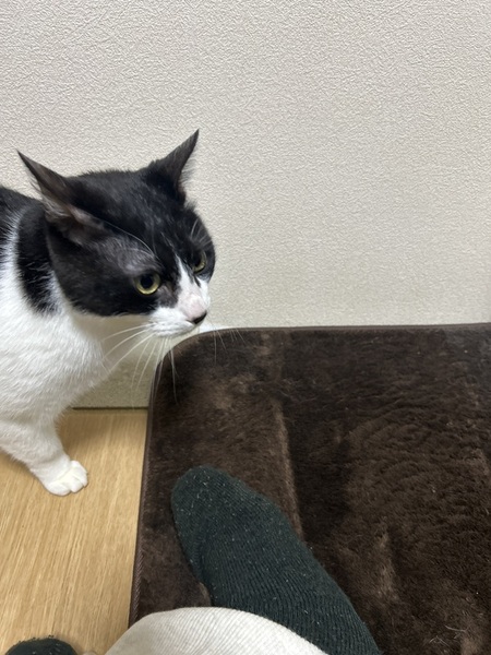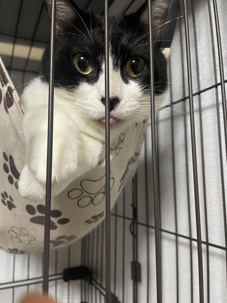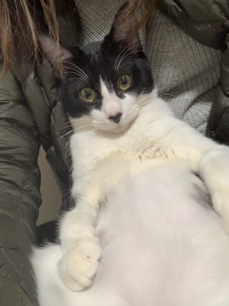 | 特徴(性格など) | ハチワレ、目の大きな、ビッグキャットです【推定8キロ】、おとなしく、ビビリな面がありますが、慣れるととても甘えん坊な子です。 | ||