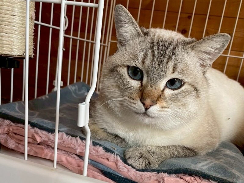 | 特徴(性格など) | 【生年月日】推定2023年頃 【種類】シャム系MIX 【毛色】 シールリンクスポイント 【性別】オス 【去勢】済み 【体重】6.5キロ 【ワクチン】3種混合ワクチン接種済み 【駆虫】済み 【猫エイズ・猫白血病】FIVキャリア、白血病は陰性 【健康状態】元気もあり食欲旺盛。 【性格】初対面で自分から建物に入って来たので迷い猫かと思いましたが、思ったより全然人慣れしてない事から人からご飯を貰ってた野良猫だと思います。掃除機や家電の音など初めて聞く音にはかなり警戒します。人慣れ訓練中でまだちゃんと触る事は出来ませんが、遊んでる時など背中をこっちに向けてる時にサラッと触れますが小さいシャーで怒られます笑 手からちゅ〜る食べます。クリスピーキッスなどのオヤツも手から食べます。オヤツを持ってる手は怖くないようです笑 人が動いてなければ横に座ってきたり至近距離を通り過ぎたり、なんなら遊んでる最中に体を踏まれます笑 シャムちゃんから近づくのは大丈夫ですがこっちからアクション起こすと怒る矛盾が面白いです。 繊細な性格で臆病。人になれるまで時間がかかると思いますが、ゆっくり時間をかけたら慣れると思います。猫エイズ(FIV)キャリアですが、症状は全くなく良好です。猫エイズに理解のある方への譲渡を希望します。 譲渡は、もう少し人慣れしてくれてからになります。(それでも今すぐうちへ!という方はご連絡ください) FIVについて FIVは猫同士の怪我するような深い咬み傷で感染します。人や他の動物には感染しません。栄養のある食事、ストレスフリーな生活を心がけ穏やかに過ごさせてあげる事で発症せずに猫生を全うする子がとても多くいます。 |