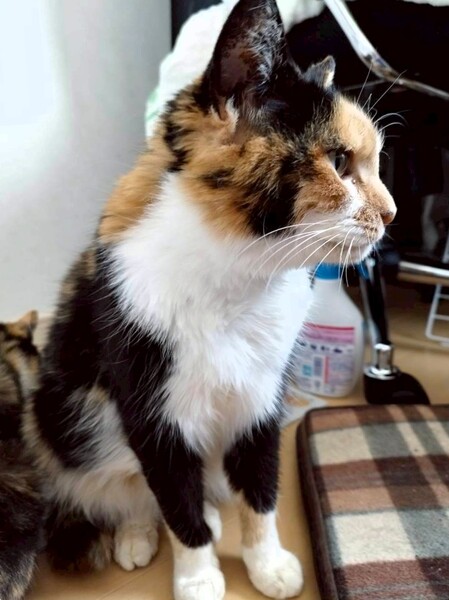 | 特徴(性格など) | 性格や特徴 【仮名】わさび 【年齢】推定2025年春生まれ 【性別】メス 【毛色】三毛 【性格】穏やかですぐにゴロゴロ喉を鳴らしちゃ甘えん坊さんで、話しかけると返事もしてくれます。他の猫に対しても臆せずアピールできるフレンドリーな性格で、人懐っこくて美しい三毛猫ちゃんです。とても人間を信頼しています。面会も大歓迎ですのでぜひご応募ください。 【一緒に暮らしていた猫達】 ②ポテチ♀ ③つくね♀ ④ちくわ♀ ⑤お琴♀ |