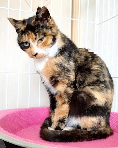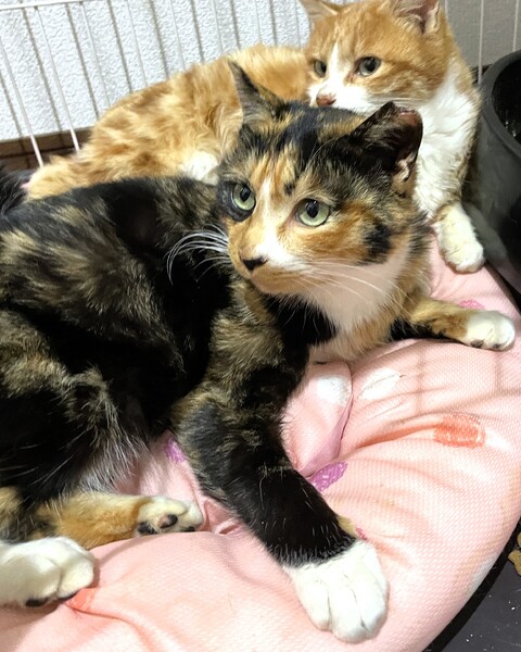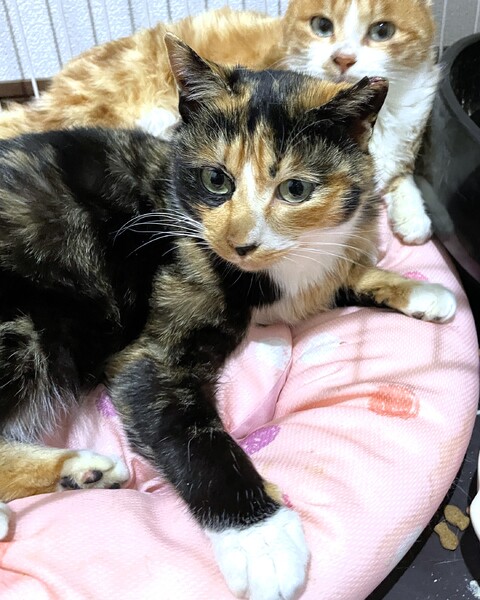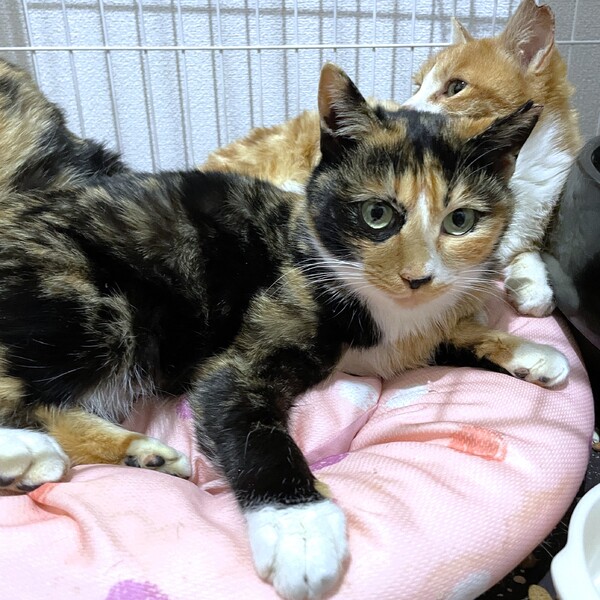 | 特徴(性格など) | 【仮名】ポテチ 【年齢】推定2025年春生まれ 【性別】メス 【性格】おっとりと穏やかですぐにゴロゴロ喉を鳴らしちゃう甘えん坊です。近くに座ると膝の上にきてくつろいだり頭をゴチンとぶつけながら甘えてきてます。話しかけると返事もしてくれます。人懐っこい美しい三毛猫ちゃんです。とても人間を信頼しています。面会も大歓迎ですのでぜひご応募ください。 【一緒に暮らしていた猫達】 ①わさび♀ ③つくね♀ ④ちくわ♀ ⑤お琴♀ |