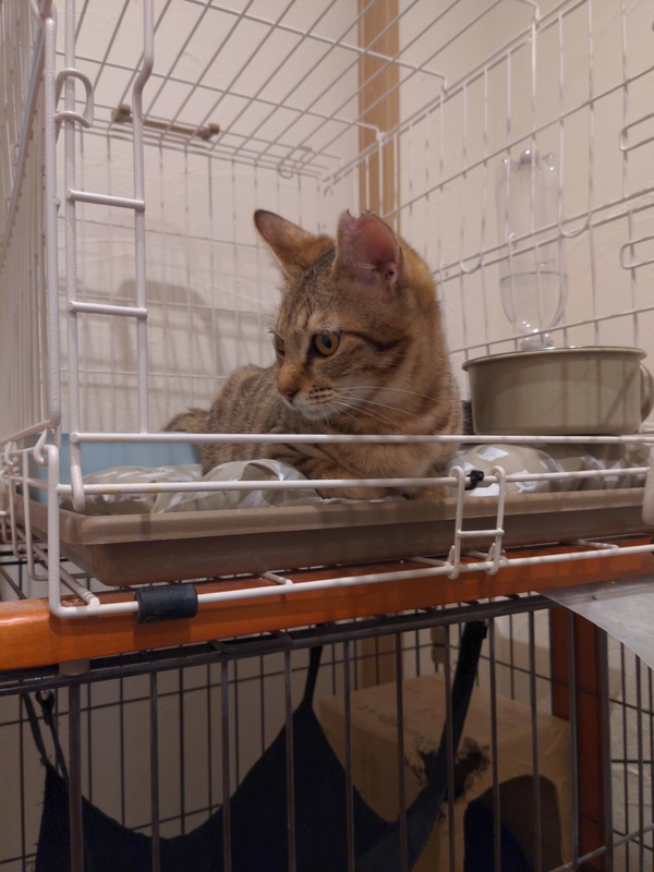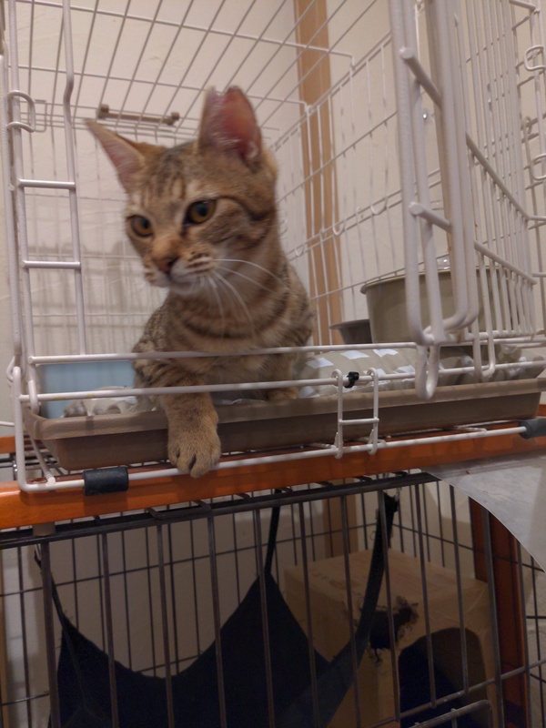 | 特徴(性格など) | 明るい毛並みのサビキジ色 よく慣れています。 活発で甘えん坊。 左耳がさくら耳です。 |
