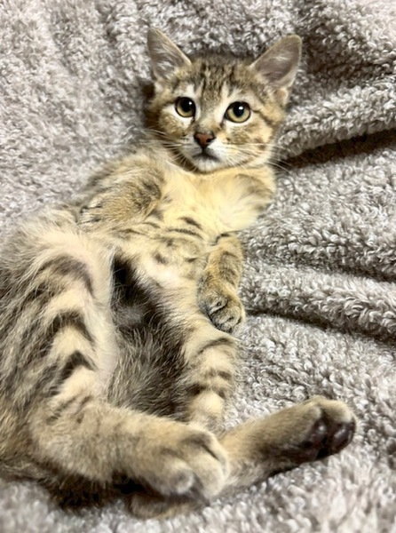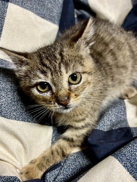| 特徴(性格など) | 【仮名】こむぎちゃん 【性格】キジトラ女子のこむぎちゃん☆ ミルクから育てた為人馴れバツグン! 末っ子っぽい甘えん坊さんです。 少し控えめな性格なのでいつもお友達が遊んでいるのを影から見ているようななんかいイジらしくてついつい手をつないで差し出してあげたくなる可愛い子です。 ※1ピキ譲渡応相談 |