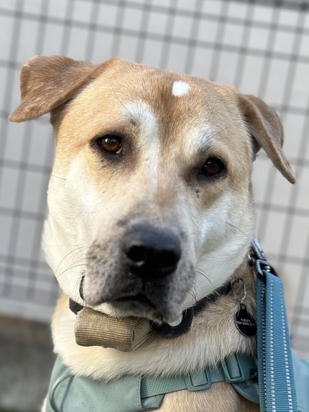 | 特徴(性格など) | 【はじめに】 ◉預かりブログ・HP・譲渡条件を【必ず】熟読の上、アグリドッグレスキュの専用フォームからご応募お願いいたします アグリドッグレスキューHP https://aguri.nomaki.jp/ 預かりブログ 「優しく賢い大きな男の子 ジョナサン」 現在所在地:神奈川県 横浜市 種類:その他の雑種 年齢:2~4才くらい サイズ:大型犬 雌雄:♂オス ワクチン:混合ワクチン接種済み 去勢:去勢手術済み 単身者応募:不可 高齢者応募:不可 茨城県動物指導センターより引き出し 体重 28kg位 ジョナサンは茨城県動物指導センターの集団房に収容されていた男の子です。 当時センターの収容犬数は180頭を超える過密状態で、その房の飲水用のバケツ脇を自分の場所と決め、そこで静かにひっそりと過ごしていました。 ごはんとオシッコ、ウンチ以外ここから動くことはなかったそうです。 センター情報にあったジョナサンの寸評は「なかなか動こうとしない子です。動かないので触れます」でした。 簡単には動かない男…それが当時のジョナサンです 笑。 人との暮らしはもちろん初めてのジョナサン… じっと警戒するところから始まりましたが、家、人、暮らしの音などを静かに観察し、持ち前の賢さで少しずつ理解し、新しい暮らしを受け入れてくれるようになりました。 【性格】 大型犬らしい穏やかで優しい男の子です。 なんでもすぐにできる器用なタイプではありませんが、経験を積み重ね、しっかりと学んでくれる賢さがあります。 家にいる時は相変わらず自分のベッドで「動かない男」ですが、最近少し心の扉が開き始めてきたようで、ごはんが楽しみでキッチンに見に来たり、帰宅時にお出迎えにきてくれたりする様子はとても可愛いです。 「いけない」ということもしっかり伝わる子です。 吠えたりすることもありません(というか、まだ一度も声を聞いたことがありません) 人にも他犬にも攻撃性は全くありません。 【散歩】 お散歩は大好きです。 首輪やハーネス、リードをもっていくと、自分で「よっこらせ」と立ち上がり、お散歩準備に協力してくれます。 当初は人や車を見ただけで藪に飛び逃げるようなところからのスタートでしたが、今はいろいろなところをゆったりと歩けるようになりました。 リードを引く人をしっかりと認識し、すぐ隣をとても上手に歩きます。 体の大きなジョナサンですが、通常の散歩ではその体重を感じることはほとんどありません ゆっくりでも、早足でも、止まる時でも、ちゃんと合わせてくれます。 散歩中緊張するような場面でも、きちんとオスワリをして落ち着くことができます。 大きな体でゆったりと歩くジョナサンとの散歩はとても楽しく気持ちの良い散歩です。 野犬気質の強いジョナサンですので、お互いの関係性を作り上げる散歩はとても大切です。 環境やハンドラーに慣れるためにも、じっくり時間をかけて段階を踏んであげてください。 【健康】 具体的な症状は出ていませんが、フィラリア陽性で現在はボルバキア治療中です。 譲渡時までに陰転していない場合は治療の継続をお願いすることになります。 おなかも調子がよく快便、良便が常です。 皮膚も痒み赤みはなく、被毛もつややかです。 その他血液検査等も問題はなく、とても元気です。 【トイレ】 基本オシッコ、ウンチとも散歩時に済ますことが多いです。 頻度は多くありませんが、家の中ですることもあります。 ペットシートをしっかり認識し上手にします。 【お世話】 お風呂、爪切り、歯磨き、体拭き、足拭き、ブラッシングなど基本的なお世話は何でもさせてくれます。 抱っこは少し緊張するようなので少しずつ練習して、だいぶできるようになってきました。 【ごはん】 ごはんはドライフードにササミやそのスープ、ウエットフードなどをトッピングしています。 先住犬と同じ場所で食べていますが、トラブルが起きることはなく、嬉しそうに待っています。 【他犬に対して】 威嚇や攻撃性、吠えたりすることはありません。 平和で優しい男の子です。 散歩で会う他犬とは大小サイズは関係なく、上手に挨拶をしたり距離をとったりしています。 【人に対して】 人に対しても少しずつ慣れてきました。 初めての人でも自分から匂いをかいだり、オヤツをもらったりすることができます。 【逸走・脱走対策】 穏やかな性格でも野犬気質の大型犬なので、しっかりした逸走脱走対策が必要です。 慣れていない環境では外への気持ちが強く出るので特に注意が必要です。 玄関や玄関に出るまでのアプローチへのゲートの設置、掃き出し窓や、椅子やソファ経由でたどり着ける出窓などへの柵の設置など最大級の対策をお願いします。 犬具の種類やその装着の仕方については具体的にお話しをさせていただくことになります。 エアタグ・GPSの常時装着をお願いします。 【留守番】 現在は先住犬との留守番、単独での留守番、ともに大丈夫です。 【就寝】 リビングにある自分のベッド