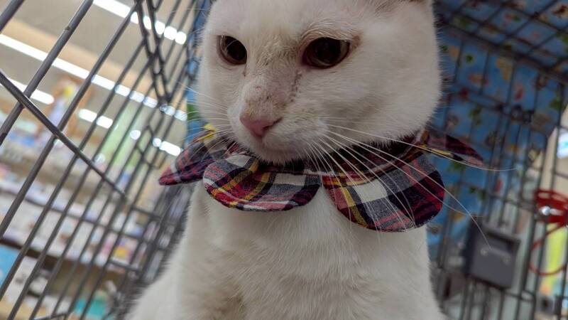 | 特徴(性格など) | ・アピールポイント 真っ白な毛がとても綺麗な男の子です。 少しビビリさんです。 玩具大好き、チュールも大好きで袋を見せたら直ぐに近寄ってきて頂戴とニャーニャー鳴きます。 沢山の猫達と暮らして居てどの子とも仲良しです。 ・譲渡先の希望:生涯大切にしてくださる方希望です。 |