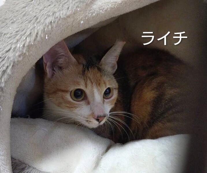 | 特徴(性格など) | 真ん前お目々の美人ヤンママさんです。 可愛い娘・あんずちゃんをしっかりサポート。是非二人一緒にお迎えください。 すっきりした体つきの元気いっぱい好奇心いっぱいの美しい縞三毛です。スタイリッシュな長尻尾です。 おもちゃに飛びついてよく遊び、人大好きななでなで猫です。大変かわいい子です。 |
