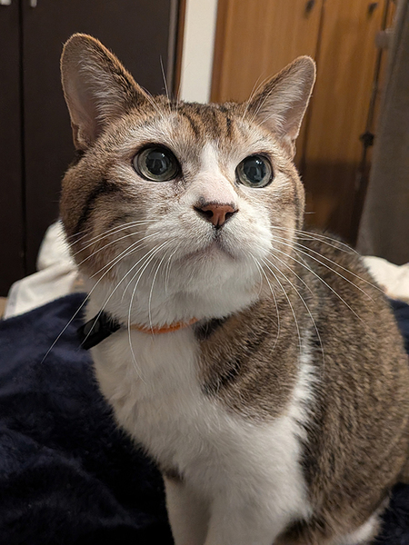 | 特徴(性格など) | ■□ 性格 □■ 本当に、とにもかくにも甘えん坊。部屋に人が入ると足元にスリスリしてきて、部屋から人がいなくなるとナーゴナーゴと鳴いて惜別してくれます(笑)。 保護当初は、部屋から人がいなくなると淋しがって結構なボリュームで鳴いていましたが、環境に慣れた今は落ち着いて過ごせています。 夜寝るときにベッドに入ると、布団の足元の方で猛烈にふみふみして、気が済んだら世話人の顔の真横でゴロンと横になって一緒に寝る、がルーティンです。 とにかく人のそばにいたい。そんな思いが日々の様子から見て取れます。 ▶▶ちょっぴり噛みます 甘えたい気分がMaxになると、その勢いで噛むことがありますが、本気噛みではなく、また「痛いっ」と声をあげるとやめてくれます。 ■□ ごはん □■ 健康状態の項目で後述しますが、たけるは慢性腎不全のため、療法食を与えています。また、便秘気味のためウェットフードにサイリウムを混ぜています。 味に慣れると飽きてしまうようで、食ムラがあります。ただし、獣医師から「適正体重は5kg超」と言われており、4.7kgくらいの今は、とにかくたくさん食べてもらう必要があります。 そのため、いくつかの種類のフードをローテーションさせるなど、飽きないようにする工夫が必要です。 ■□ トイレ □■ 基本的にはトイレをしっかり認識しており、大小ともにトイレで排泄できます。ただ、飲水量が多く、そのためおしっこの回数が多いため、まめにトイレ掃除する必要があります。 これまでに数度、人のベッドの端っこの方で粗相してしまったことがあるため、防水シート&ペットシーツでブロックして様子見している状況です。 ■□ 爪とぎ・爪切り □■ 爪とぎはボール紙製の爪とぎでしてくれますし、壁やソファなどですることはありません。 爪切りもおとなしくさせてくれます。 ■□ 留守番 □■ 現状では誤飲や粗相はないので、室内フリーでも安心してお留守番してもらえます。 ■□ 他の猫との関係性 □■ 現在、同居猫がいる環境で過ごしていますが、部屋を完全に分けています。というのも、オス猫が苦手な同居猫(去勢済み♂)がいるため、です。 部屋のドアが少し開いているときに同居猫と顔を合わせたことがあるのですが、たけるの方から威嚇したりすることはありませんでした。 …というよりも、仕切りを開けた人の方にすぐにすり寄ってきて甘えてきた、という方が正解で。猫よりも人の方が気になるみたいです(笑)。 健康診断の結果、以下の点で健康面での留意事項があります。 1.慢性腎不全(それによる貧血・高血圧) 2.膀胱アトニー(膀胱機能不全)の可能性あり 3.肝臓に少し腫れあり ======= ■慢性腎不全 慢性腎不全のステージ3と診断。尿検査でも尿比重が1.01と薄く出ており(正常で1.035~1.050)、またタンパクも出ています。 そのため食事は療法食で、加えて週に3回(1回120ml)皮下補液を行っています。 皮下補液は現在、保護宅で行っていますが、たけるは膝の上でおとなしく抱っこさせてくれるコなので、とてもスムーズにできています。 ▶▶貧血 血液検査でHct(ヘマトクリット)の数値が低く、慢性腎不全の影響による貧血と診断されています。 一度、エポベットを注射し、また毎回の食事時に鉄分補給のサプリメントを与えて改善を図っています。 ▶高血圧 血圧の上が200ほどあり、高血圧との診断。これも慢性腎不全に伴う症状と考えています。現在は1日1回、降圧剤としてアムロジピンを投与しており、血圧も下がってきています。 ■膀胱アトニー(膀胱機能不全)の可能性あり エコー検査の結果、膀胱アトニー(膀胱機能不全)の可能性を指摘されています。 現状で排尿困難な様子は見られませんが、おしっこ時の様子は気にかけておく必要があります。 ■肝臓に少し腫れあり エコー検査の結果、「肝臓が少し腫れていて大きめ」と診断されました。血液検査による数値上は問題はないため、現在は様子見しています。 ★☆その他の留意事項☆★ たけるには“首輪ハゲ”があります。獣医師曰く、「ノミ取り首輪をしていたのかもしれない」と言われており、今後、毛が生えてくる可能性は低いと考えています。 また、たけるは現時点で未去勢です。発情やマーキングといった行動は今のところ見られませんが、獣医師の勧めで、腎臓の数値が改善したら去勢手術をすることも検討しています。 ~~最後に~~ 縄張り意識が強い猫にとって、生活環境の変化は一大事です。そんな一大事を、たけるは推定14歳にもなって強いられました。 高齢猫に多い慢性腎不全で、医療はもちろん、フードが限定されるなど日常的なケアが欠かせないコです。 それでも、手をかけたぶんだけ、いやそれ以上の愛情表現で返してくれる、とても愛おしいコです。 だからこそ、今後の猫生をゆっくりのんびり、めいっぱいの愛情で包んでくださる里親さまからのご応募をお待ちしております。 ======= - 募集番号:221nc - 仮名:たける - 猫種:Mi